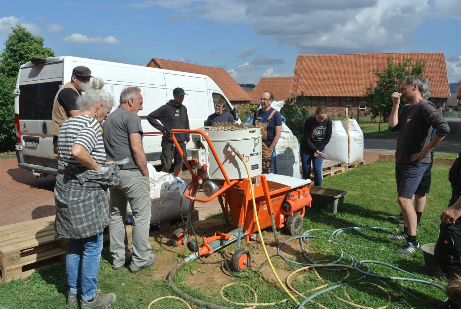 • Vorführung einer Lehmputz‑Pumpe – ideal für große Flächen