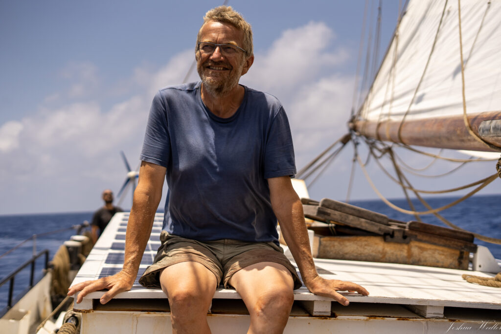 Für den Vortragenden Hinrich Claussen hat der Blick auf eine bessere Welt bei der Beschäftigung mit gesegeltem Kaffee im El Puente Weltladen in Hildesheim klein angefangen. Dem Segelfreund wurde sehr schnell klar, dass er beim nächsten Kaffeetransport über den Atlantik mit dem Frachtsegelschiff Avontuur dabei sein wollte. Die Mission der Avontuur und ihrer Besatzung ist es, Waren möglichst emissionsfrei von Lateinamerika nach Hamburg zu transportieren.