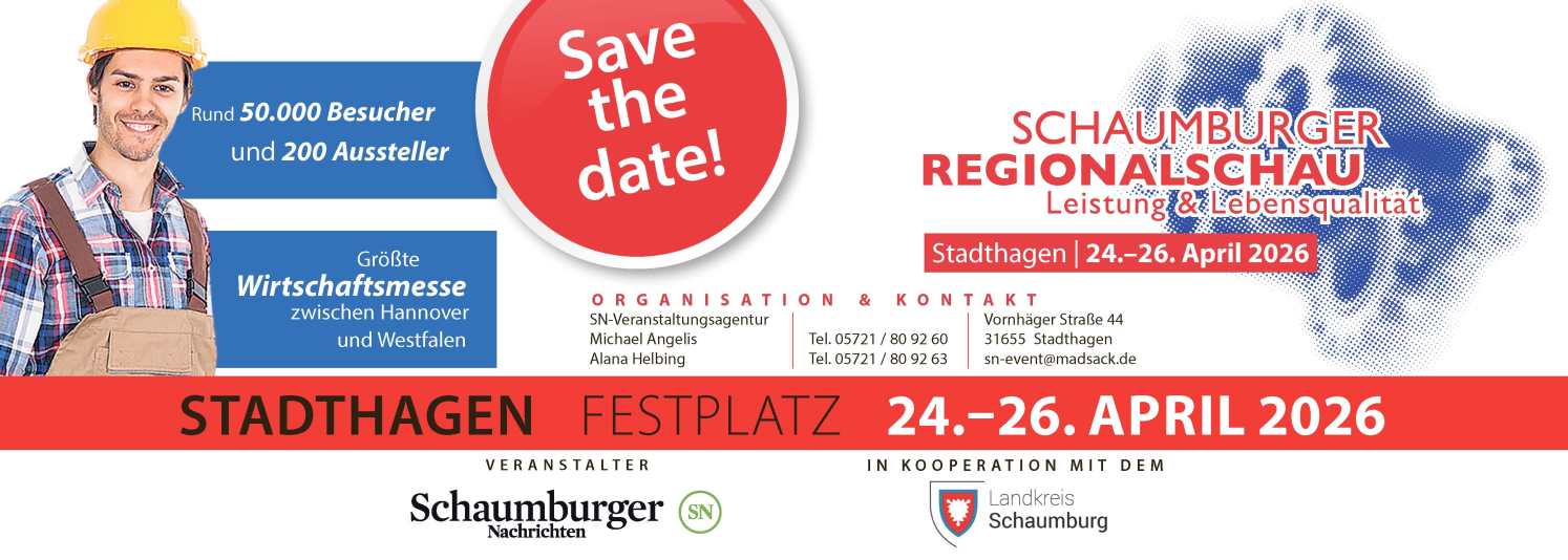Eröffnet wird die SRS 2026 bereits am Abend vor dem Auftakttag im Beisein von Ausstellern und Vertretern des öffentlichen Lebens. Veranstaltet wird die Messe erneut von den Schaumburger Nachrichten in enger Kooperation mit dem Landkreis Schaumburg mit Landrat Jörg Farr an der Spitze.