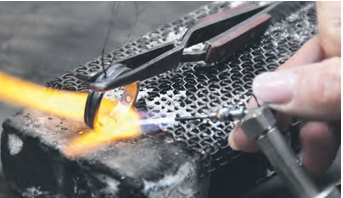 Wir lieben Schmuck und unseren Beruf“, sagen Goldschmiedemeisterin Heidje Ahrendt-Struckmeier und ihre Mitarbeiterin Julia Lauckner, die ebenfalls die Meisterschule absolviert. Ihr Arbeitsplatz mitten im Zentrum von Bückeburg ist Werkstatt und Verkaufsraum in einem. Zum Team gehört auch Doris Funke. Bei der Goldschmiede Aurum können Heiratswillige Trauringe vorher probetragen, um die richtige Größe zu finden. „Unser Handwerk ist nicht nur eines der ältesten, sondern auch nachhaltig“, erklärt die Inhaberin. „Jedes Schmuckstück kann zeitgemäß auf- oder umgearbeitet und repariert werden.“