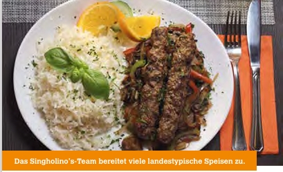 Die Speisekarte ist nicht nur ausgesprochen umfangreich, sondern enthält auch dreimal wöchentlich spezielle Tagesangebote zu vergünstigten Preisen: Dienstags gibt es Baguettes, mittwochs Pizza in allen erdenklichen Variationen, donnerstags Nudelgerichte. Unter dem Motto „Pizza, Pasta und mehr“ steht darüber hinaus ein Bringdienst zur Verfügung. „Außer Haus“ liefert das Singholino’s-Team zudem Fingerfood-Kreationen sowie kalt-warme Büfetts. „Sprechen Sie uns einfach an“, sagt Singh.